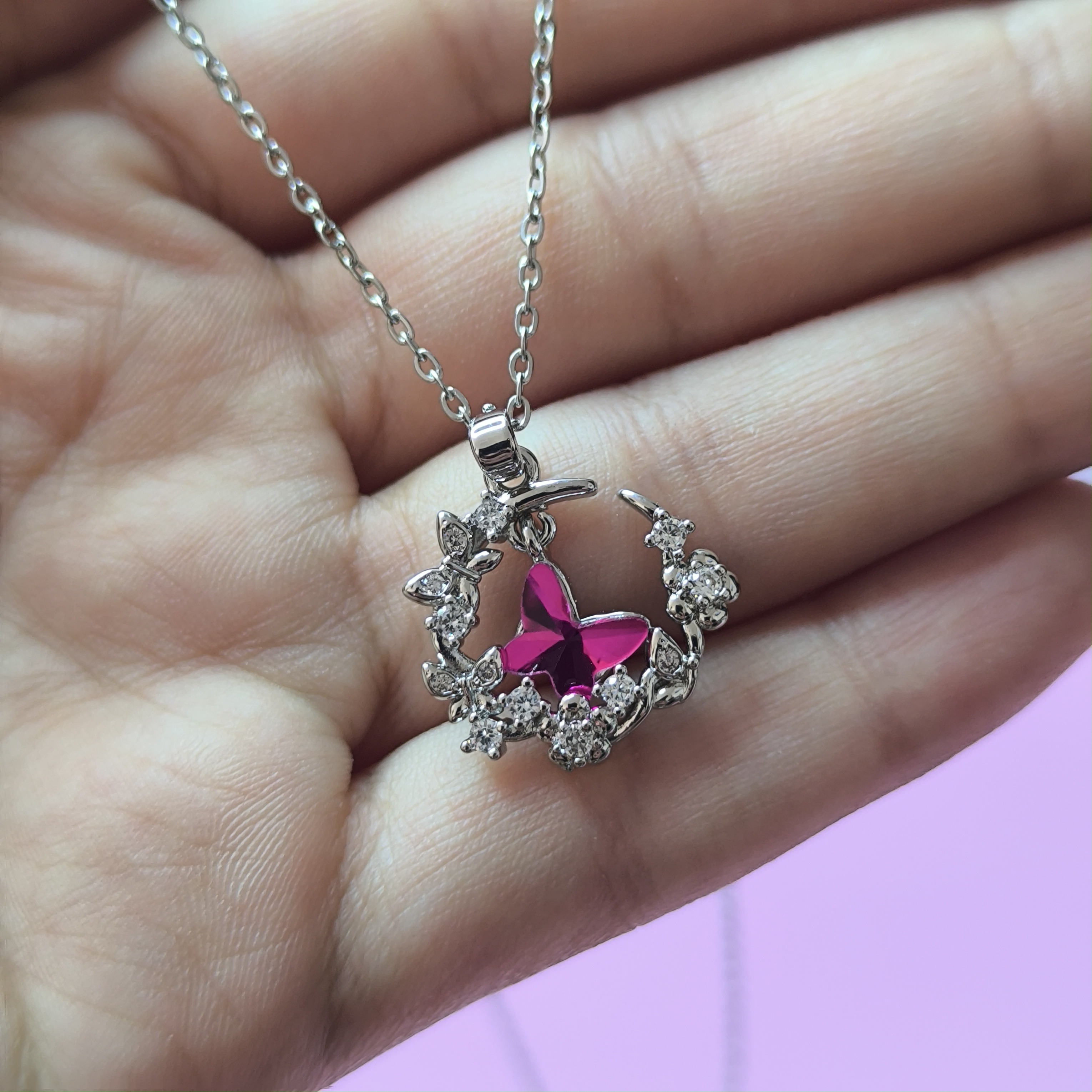 گردنبند پروانه صورتی