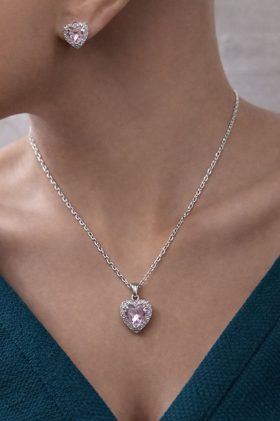 گردنبند و گوشواره نگین صورتی