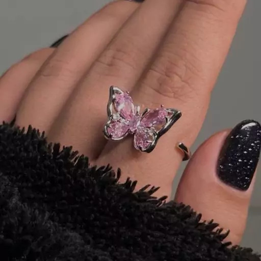 انگشتر زنانه جواهری پروانه ای فری سایز freesize رنگ ثابت در تنوع طرح
